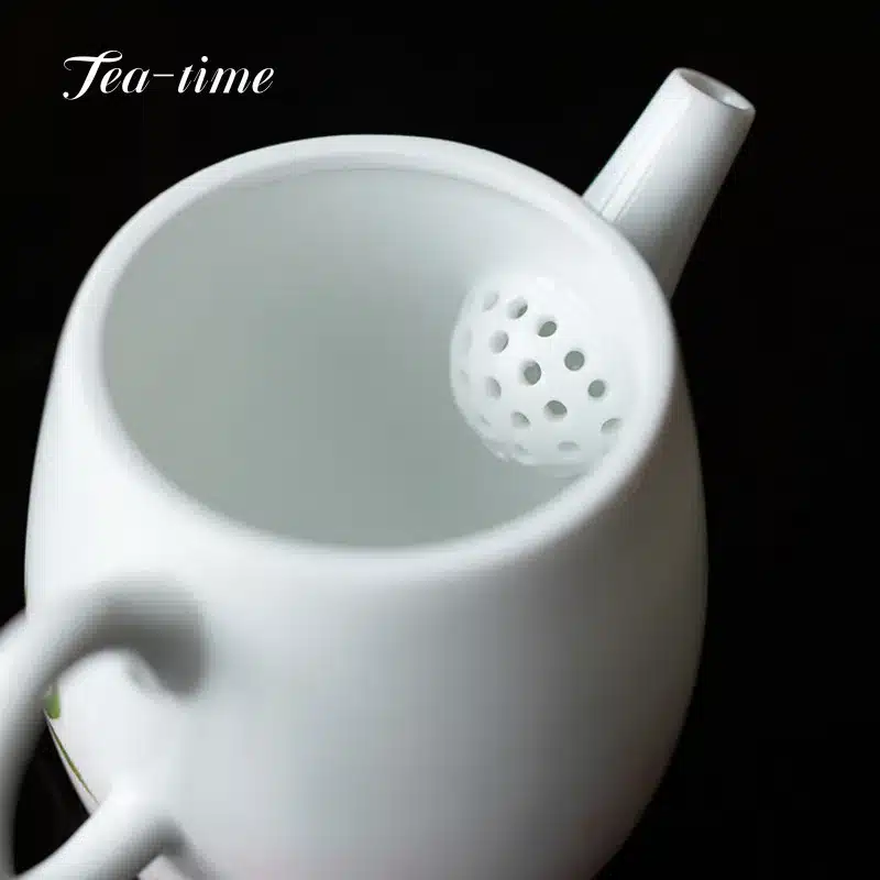 125ml Hand-painted Wisteria Flower White Porcelain Teapot Ancient Tea Infuser Pot Tea Maker Kettle With Ball Hole Tea Ceremony