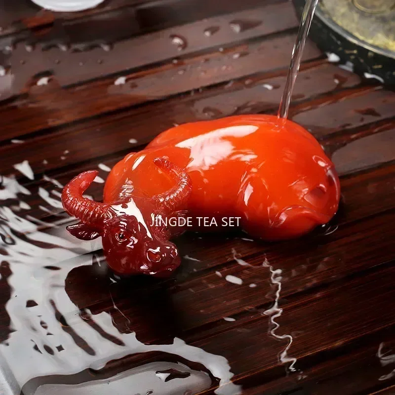 Fabulous Wild Beast Cute Red Tea Pet Spirit Figurines Tea Ceremony Utensils Chinese Room Decoration Accessories Zen Animal