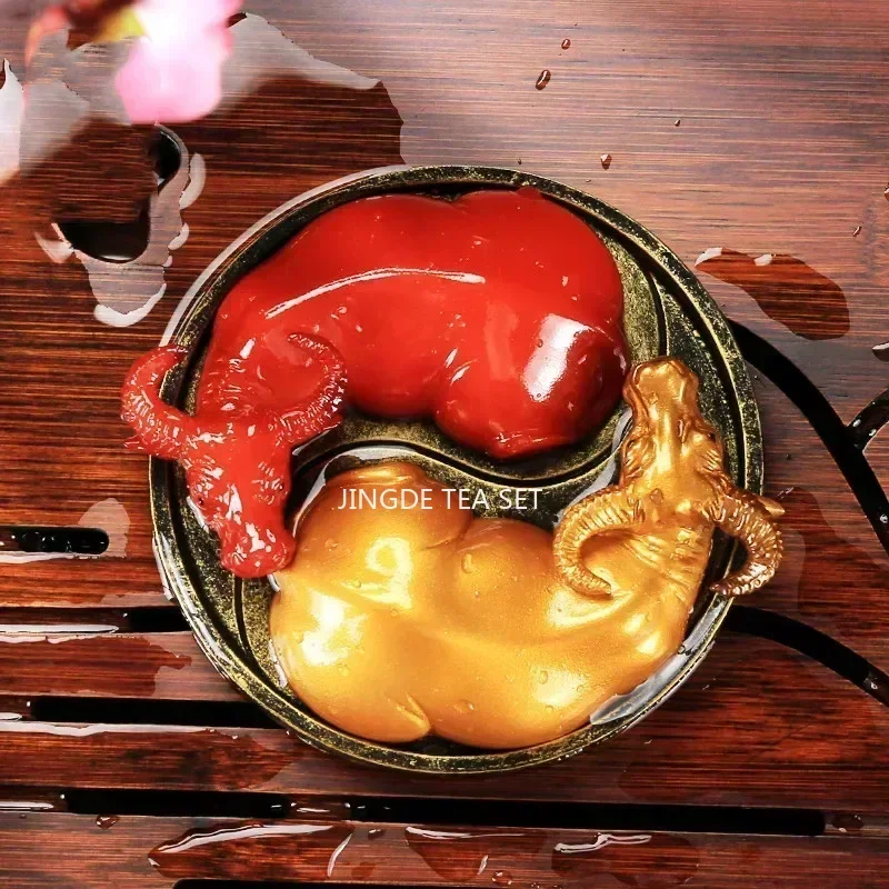 Creative Color Changing Tea Pet Resin Tea Table Ornaments Chinese Mascot Two Fish Report Happiness Zen Tea Ceremony Ornaments