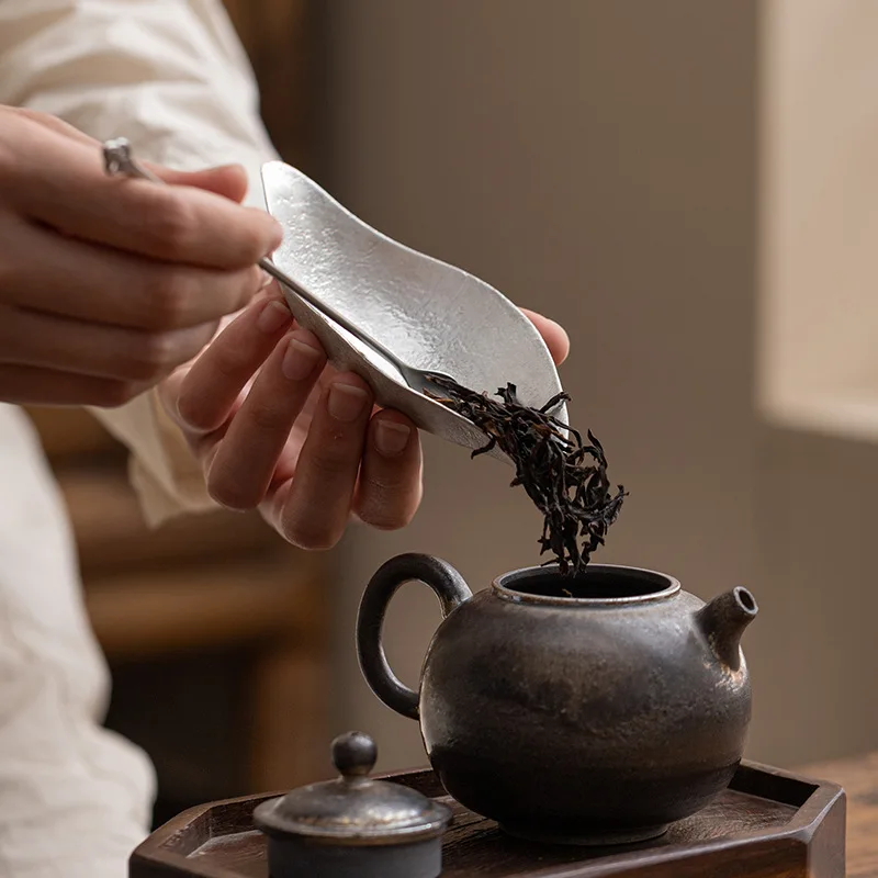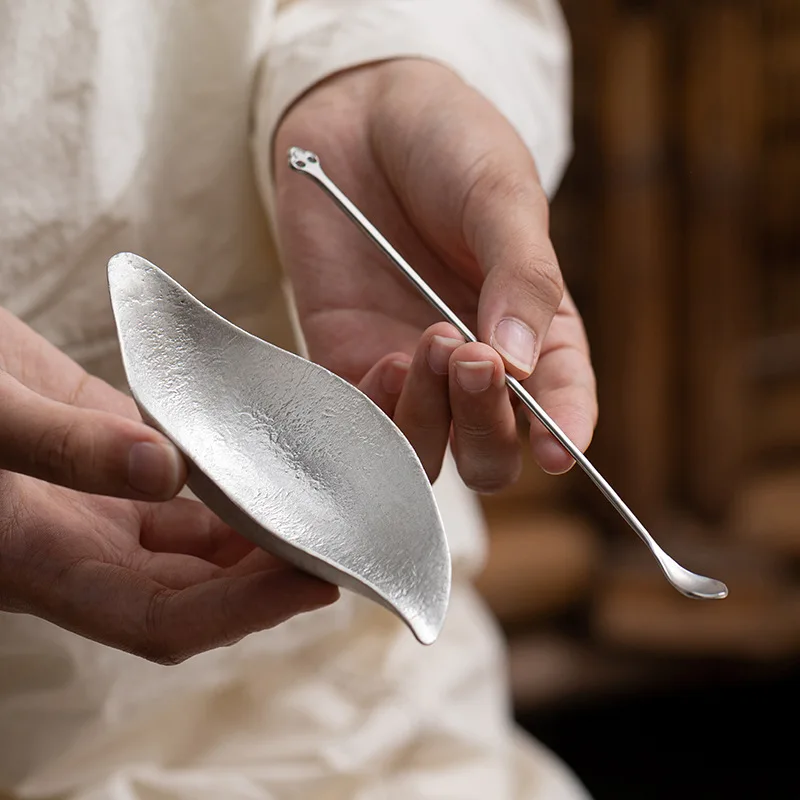 Retro Zen Tea Spoon Handmade Tin Lotus Leaf Tea Holder Wake Up Caddy Spoon Kung Fu Utensils Tea Scoop