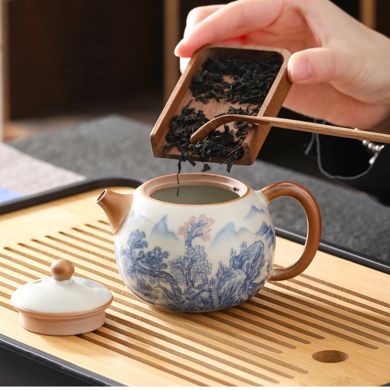 Ru Kiln Xishi Pot Household Ceramic Brewing Teapot Chinese Kung Fu Tea Set High-grade Steeping Tea Kettle