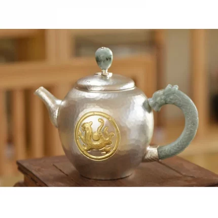 Large Capacity Hand Carved Pure Silver 99.9% Double Dragon Tea Pot ‘Dragon Egg’ Home Boiling Pot for Enhanced Tea Experience