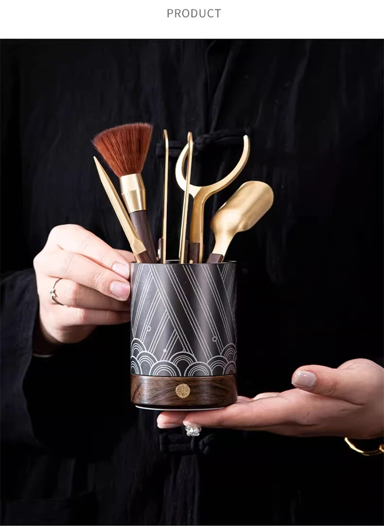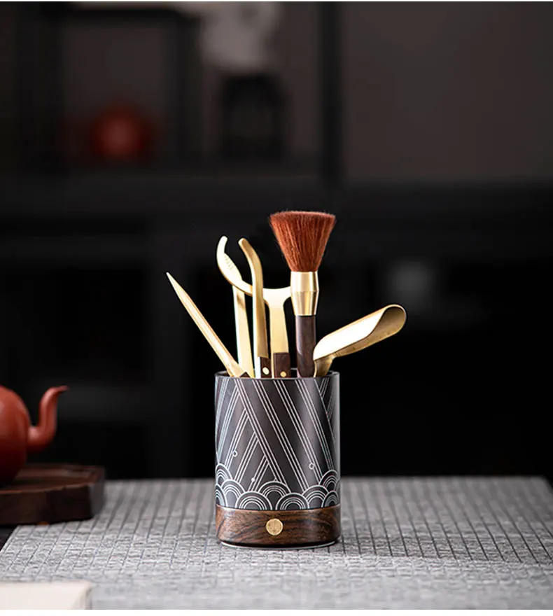 Japanese Style Gilded Galze Tea Ceremony Six Gentlemen Black Sandalwood Teapot Pen Holder Spoon Complete Set Of Teaware Tool
