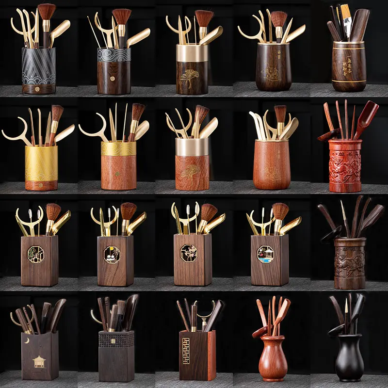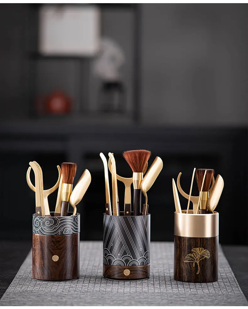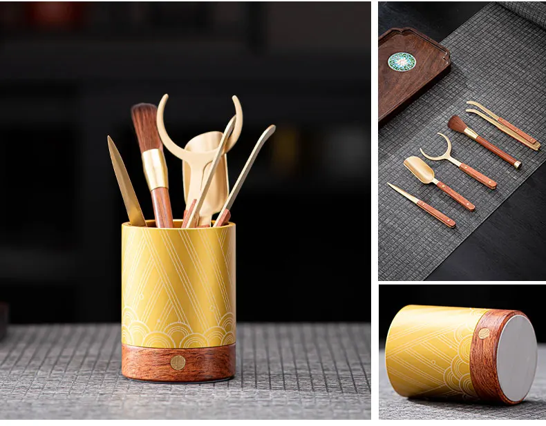 Japanese Style Gilded Galze Tea Ceremony Six Gentlemen Black Sandalwood Teapot Pen Holder Spoon Complete Set Of Teaware Tool