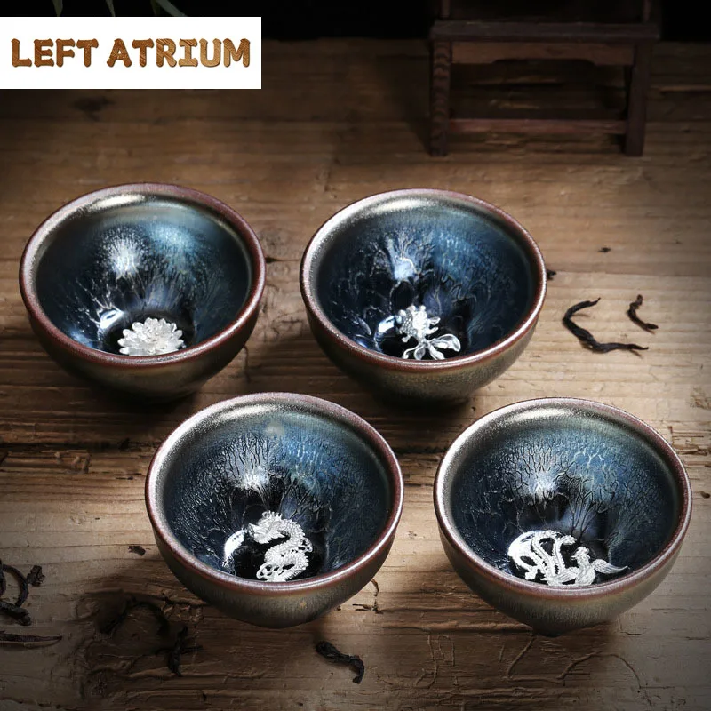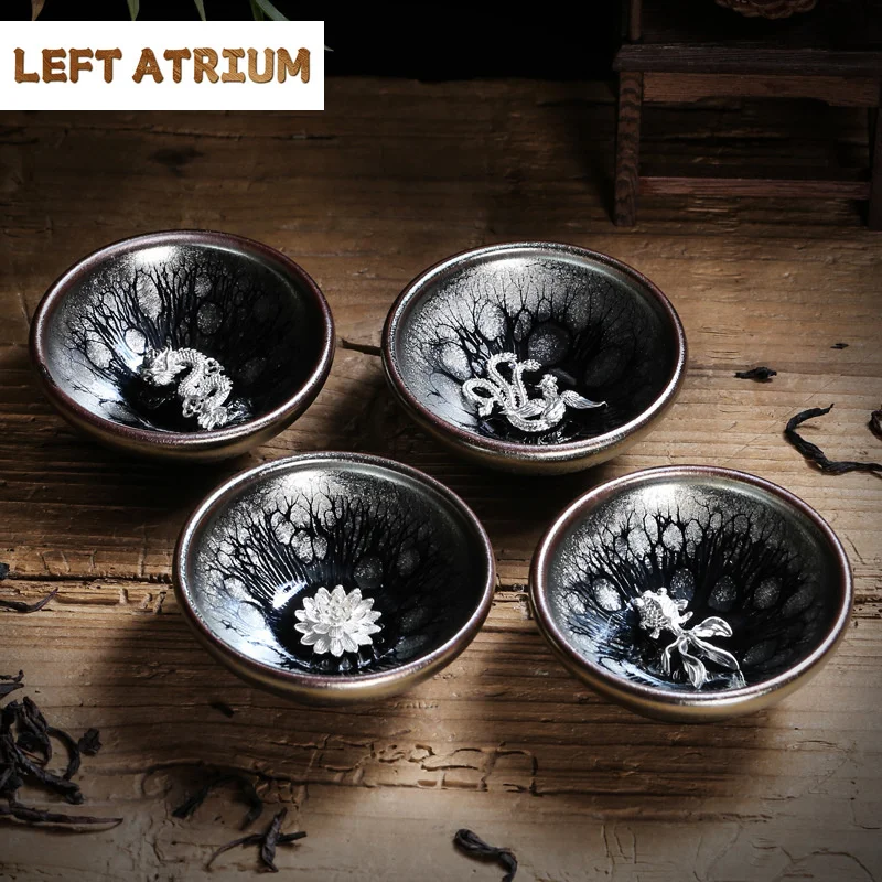 Small Capacity Jianzhan Teacup Glaze Inlaid With Silver Oil Dripping Tea Bowl Kungfu Product Ming Cup Kiln Ceramic Tea Cup