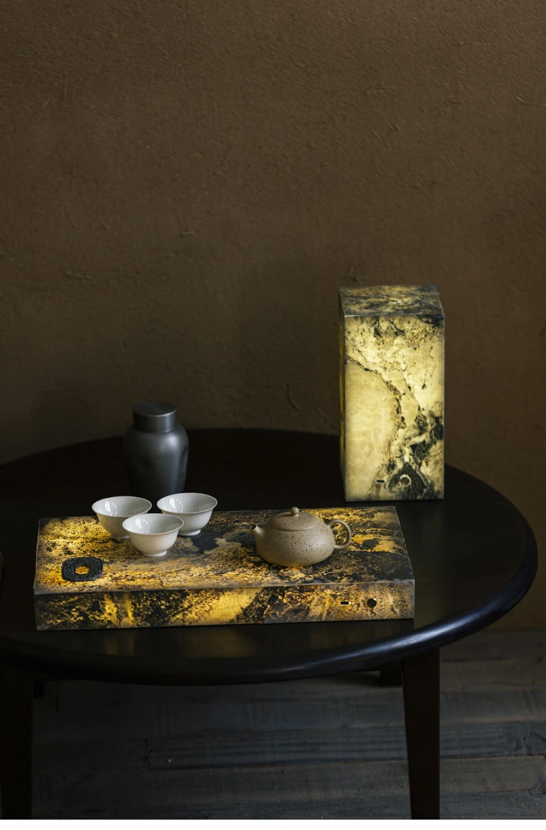 stone lamp luxury stone tea tray atmosphere table lamp luminous pot bearing natural rock ornament zen tea room wabi sandy wind