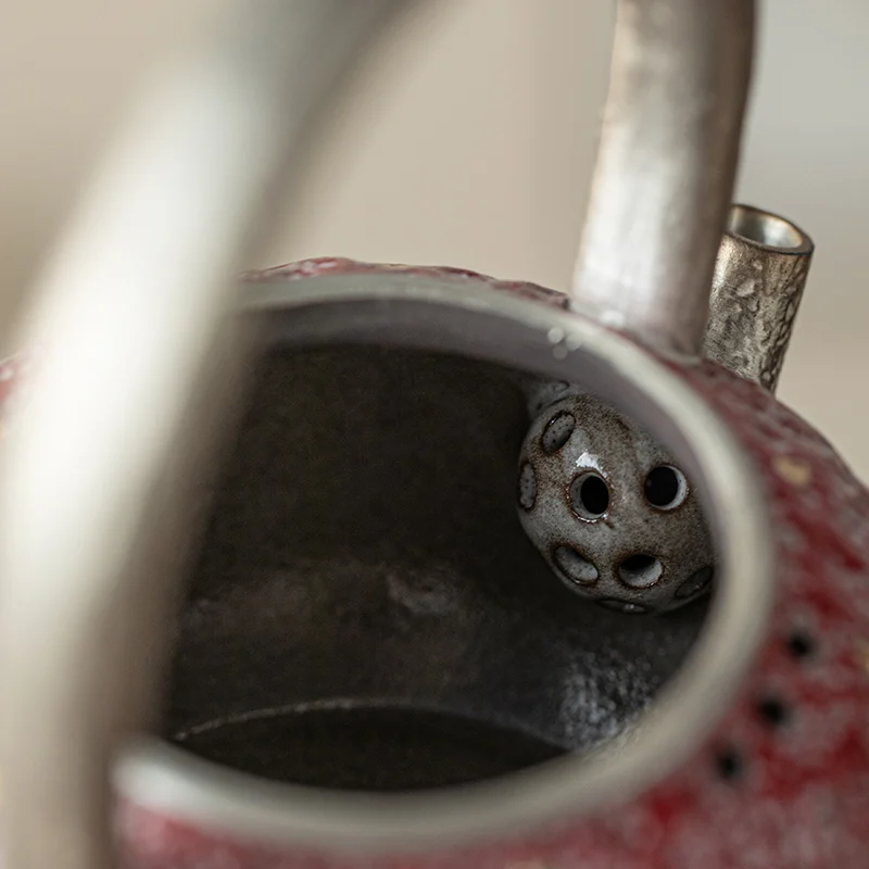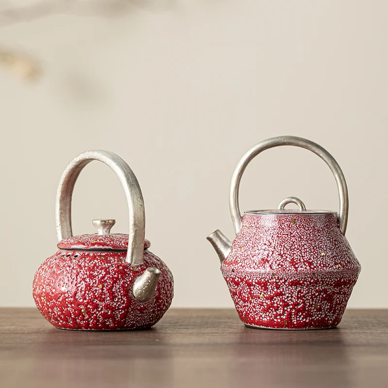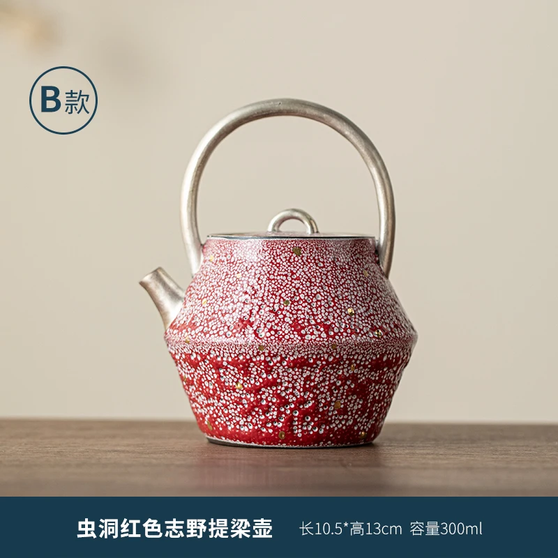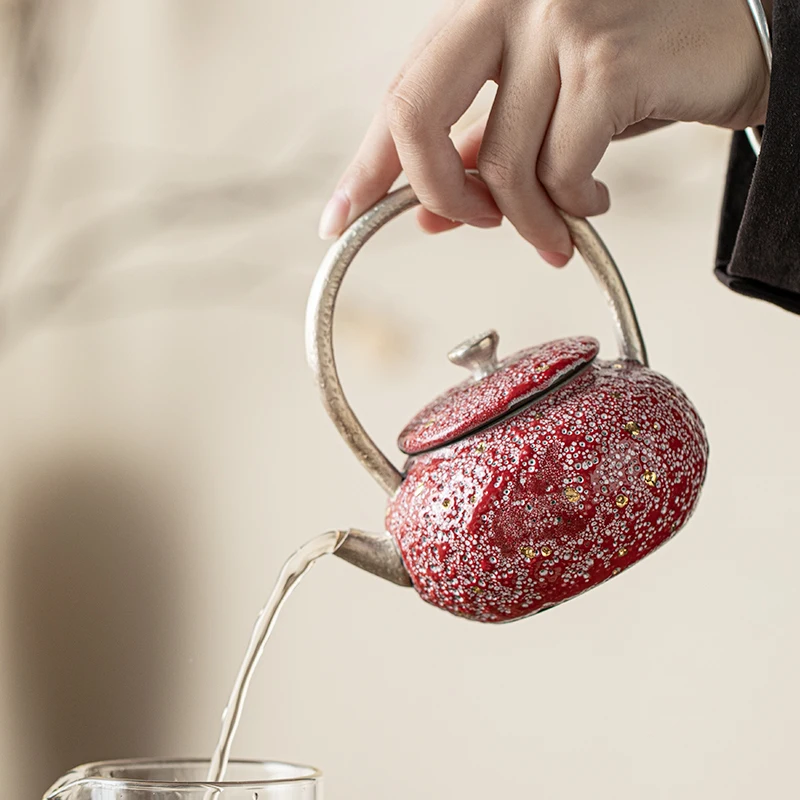 High End Ceramic Ruyi Handle Teapot, Jingdezhen High-Temperature Raw Mineral Glaze Teapot, Exquisite Retro Tea Pot, Single Pot