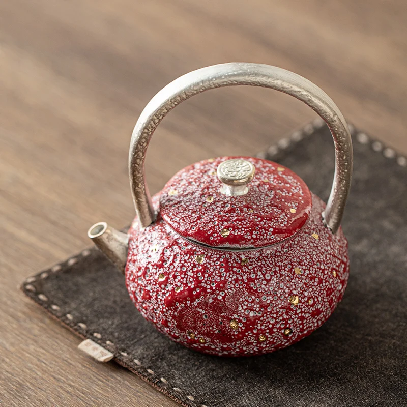 250ml Ru Kiln Gilt Silver Butterfly Lifting Handle Teapot Luxury Tea Infuser Pot Tea Making Kettle With Ball Hole Cha Ornaments