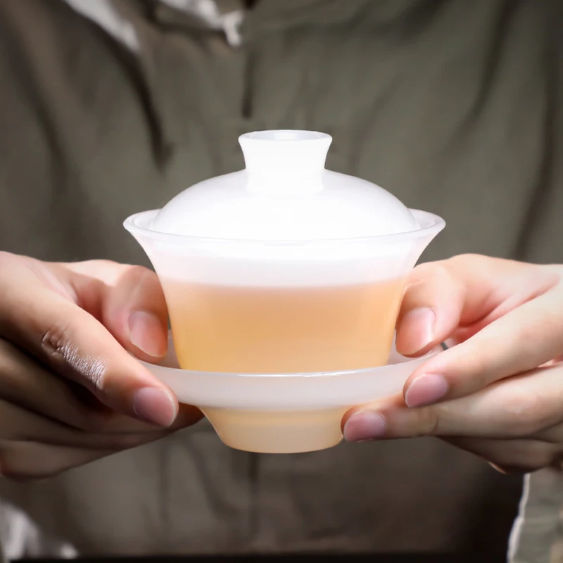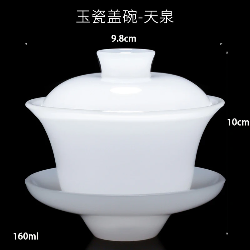 Tianquan White Jade Porcelain Gaiwan Fat White Glass Tea Tureen Large Tea Making Bowl Chinese Kungfu Gaiwan Tea Set