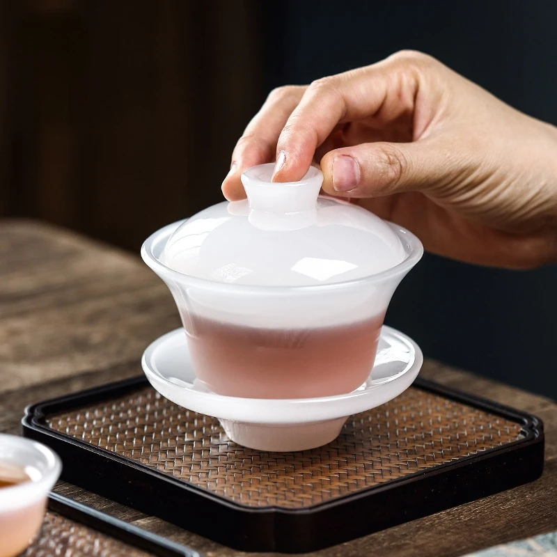 Sheep Fat Jade Gaiwan Elegant Porcelain Bowls Tea Tureen Tea Bowl With Lid Kit Tea Brewing Cover Bowl Cafes Supplies Collection