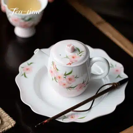 Teapot, Ceramic, Grass, Ash, Pure Hand Painted Peach Blossoms, Teapot, Kung Fu Tea Set, Teacup