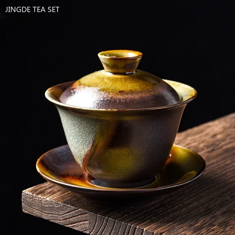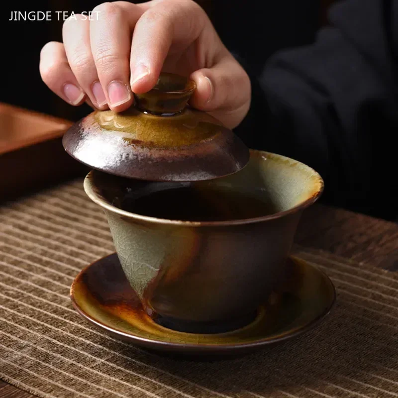 Wood-fired Kiln Changed Ceramic Gaiwan Household Handmade Beauty Teacup Retro Ceramic Tea Bowl Chinese Tea Accessories