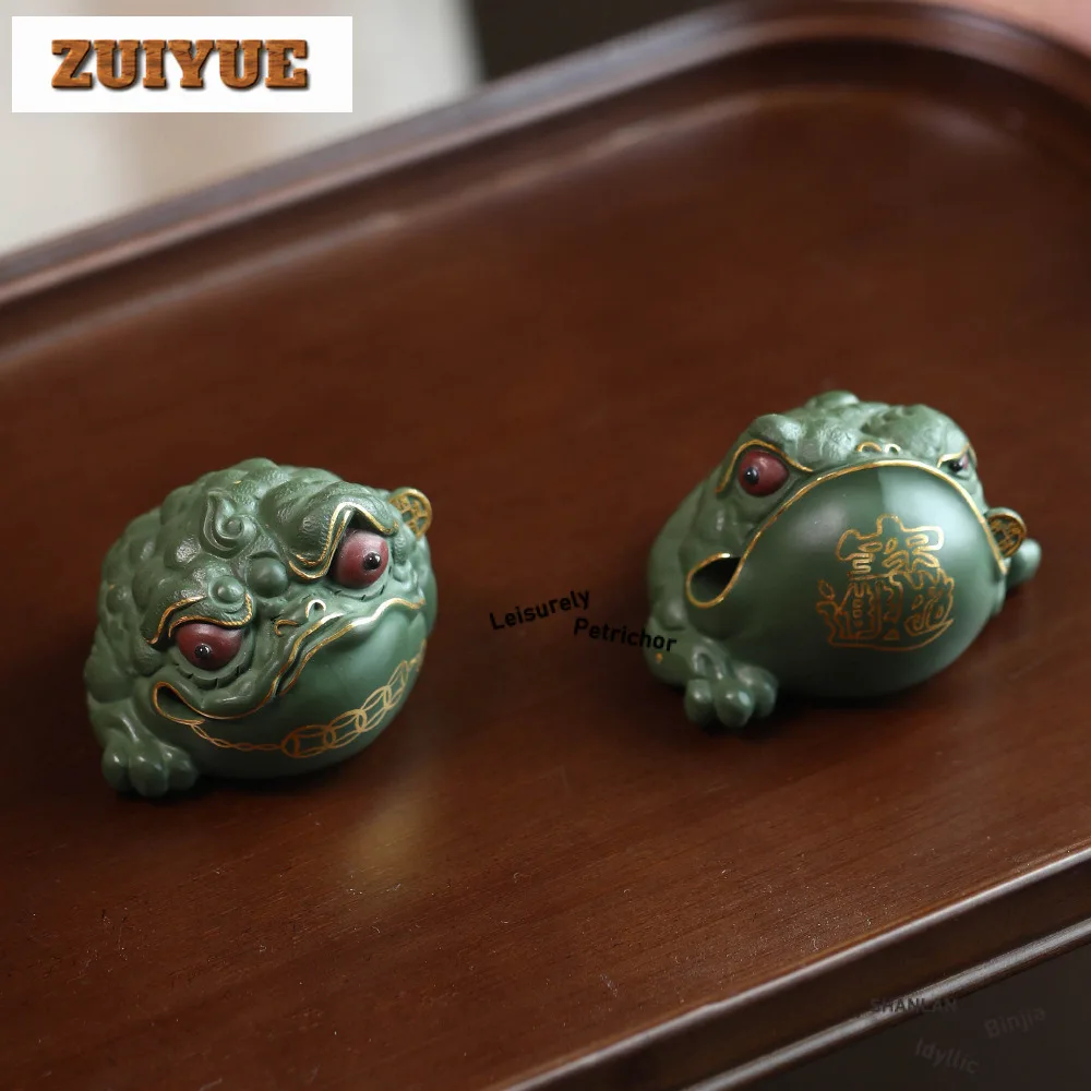 Yixing Purple Clay Toad Tea Pet Ancient Lucky Model Tea Figurine Play Toys Tea Statue Ornaments Supplies Workmanship Collection