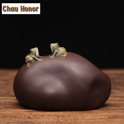 Boutique Spray Wate Purple Clay Tea Pet Frog Stone Figurine Desktop Ornaments Handmade Sculpture Crafts Tea Set Decoration Gifts