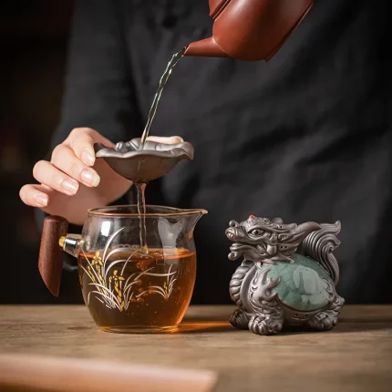 Dragon Turtle Tea Pets Statues with Tea Strainers Ceramic Home Decor Figurine Purple Clay Funny Teaware Infuser Accessories