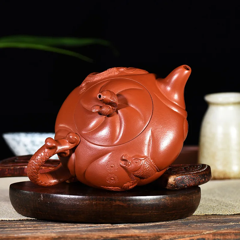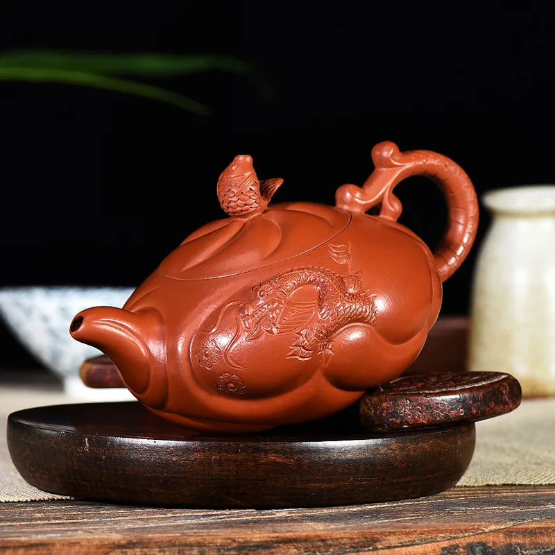 Yixing Zisha pot is approved from one piece, all handmade Zhu mud fish dragon teapot tea set Yuyue Longmen
