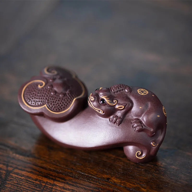 Yixing Zisha Tea Pet Pixiu Ornament Handmade Gold-plated Ruyi Pixiu Creative Tea Set Sculpture Accessories Can Be Cultivated