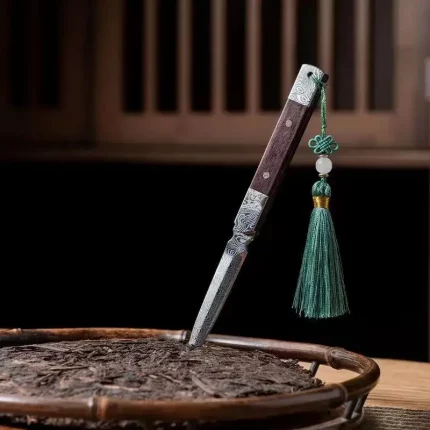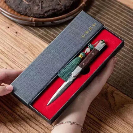 Zen Tea Knife Handmade Needle Black Sandalwood Damascus Pattern Steel Puer Tea Knife Tea Set Accessories