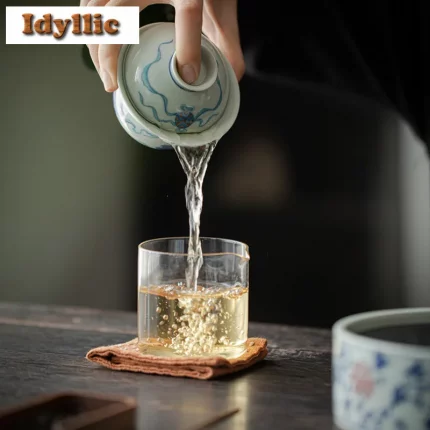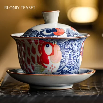 130ml Chinese Blue and White Ceramic Tea Tureen Handmade Fish Gaiwan Beauty Tea Infuser Teacup Household Tea Bowl Teaware