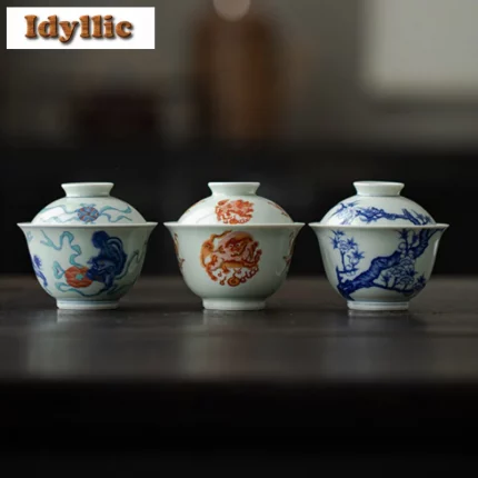 135ml White Jade Clay Gaiwan Ancient Hand-painted Flower Anti-scald Tea Tureen Tea Maker Cover Bowl Drinkware Supplies Ornaments