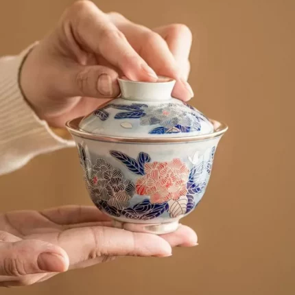 150ml Chinese Gilded Silver Gaiwan Aesthetic Tea-tasting Picture Tea Tureen Tea Making Cover Bowl Kung Fu Tea Set Decoration