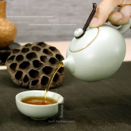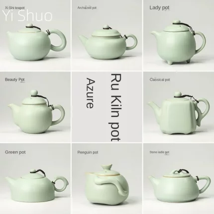 Azure Ru Ware Teapot High-End Authentic Gracked Glaze Little Pot of Vintage Pot Porcelain Kung Fu Kettle Tea Ceramic Teapot