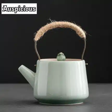 Creative Japanese Style Simple Lifting Beam Teapot Green Pine Glaze Coarse Pottery Wind Tea Making Single Pot Kung Fu Tea Set