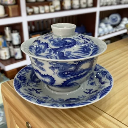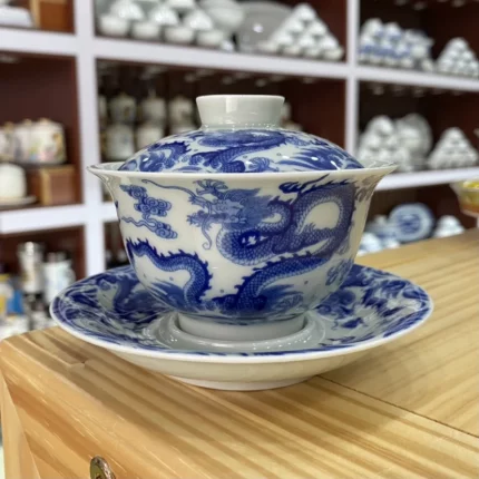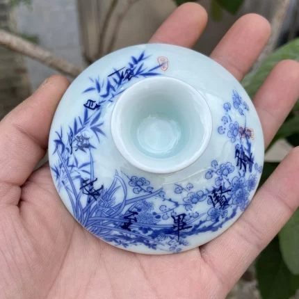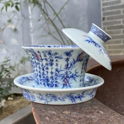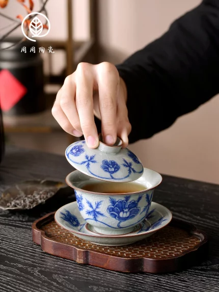 Handmade Jingdezhen Blue and White Porcelain Pattern Gaiwan Single Tea Brewing Bowl Ceramic Cup Household Kung Fu Set Ceremony