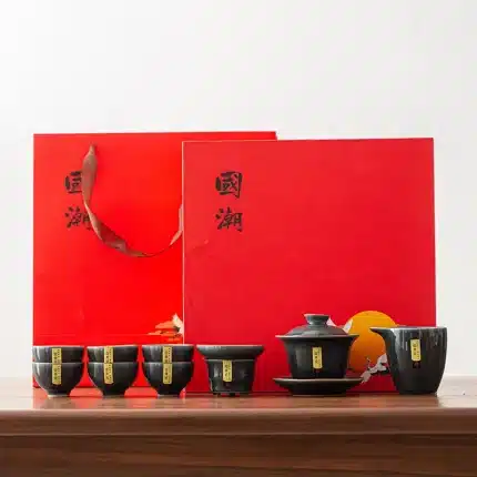 Luxury Large Jian Zhan Tea Cup Set – Elegant Ceramic Tea Utensils with Ink Feather Floral Design – Perfect Single Master Cup
