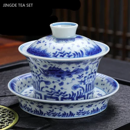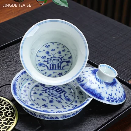 Luxurious Ceramic Gaiwan Teacup handmade Tea tureen Bowl Chinese Blue and white Porcelain Teaware Accessories Drinkware 150ml