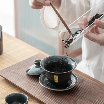 Longquan Celadon Porcelain Gaiwan China Teacups Crackle Glaze Teapot Drinkware 150ml