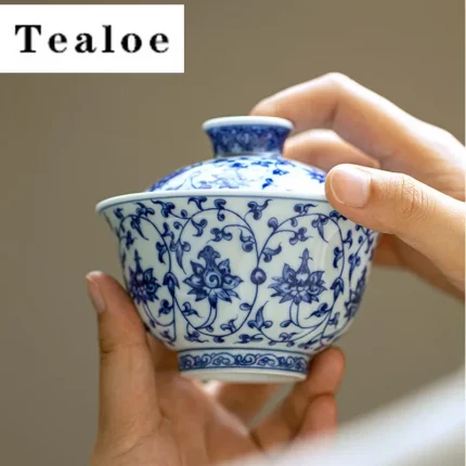 Retro Blue and White Porcelain Gaiwan Teacup Chinese Handmade Flower Pattern Tea Tureen Portable Ceramic Tea Bowl Teaware 160ml