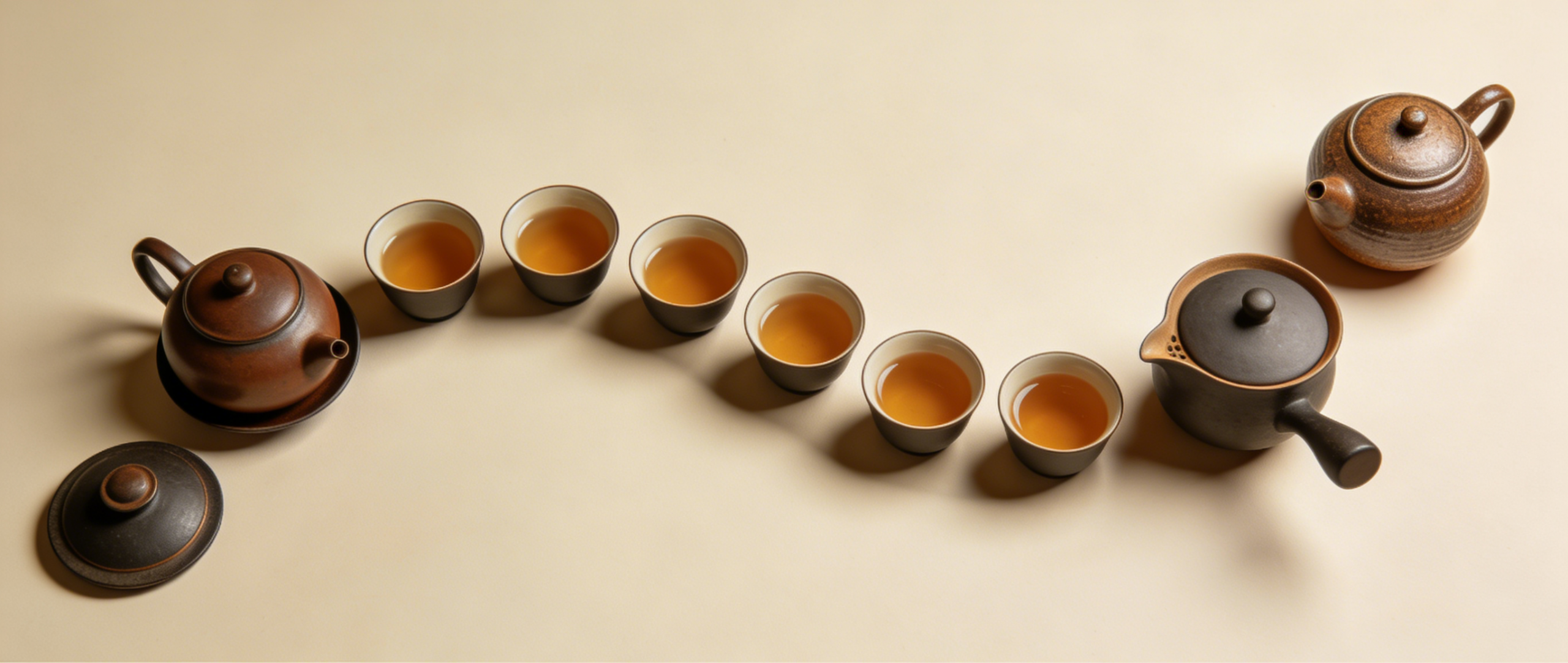 In this way, the visual system becomes a form of choreography. It guides the body, shapes the breath, and creates a sense of continuity from one infusion to the next. It transforms the tea table into a stage where every movement feels intentional, graceful, and alive.